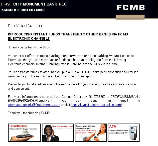 2 thoughts on “First City Monument Bank Plc (FCMB) Introduces Instant Funds Transfer Service