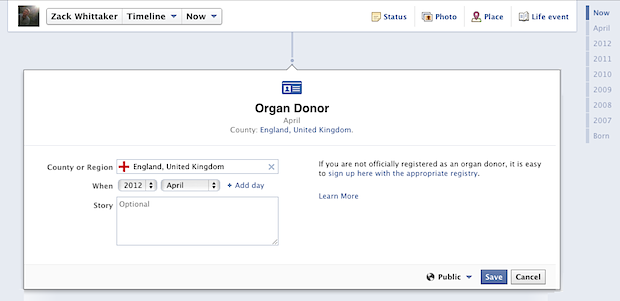The world’s largest social network now allows U.S. and UK users to include a life story on their profile pages, and offers a link urging users to sign up to official organ donation services in their region.